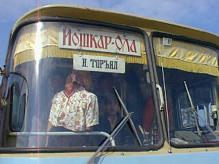 The bus is the main means of transportation between the countryside (ял) and the Town (ола), i.e., Yoshkar-Ola. The photos were taken at the bus terminal in Sovetsky during a five-minute stop on our way from Yoshkar-Ola to Novy Toryal (У Торъял).