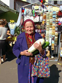 Photo 3: A babushka with courgettes. ©1997 by Kazuto Matsumura